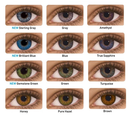 | Χρώμα Φακών Επαφής | Amethyst, Blue, Brilliant Blue, Brown, Gemstone Green, Gray, Green, Honey, Pure Hazel, Sterling Gray, True Sapphire, Turquoise |